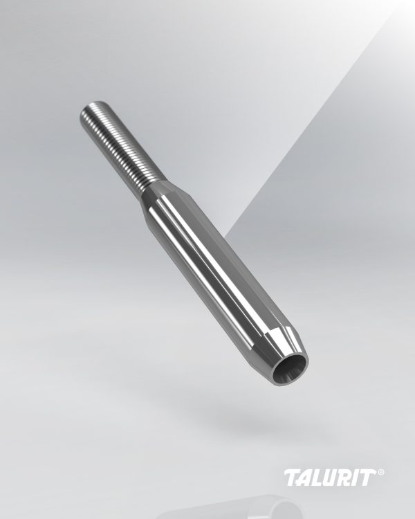 The STTT swage terminals adhere to the Talurit® system standards for mechanical splicing, ensuring reliability and performance. Crafted from specially selected carbon steel bars, the open/closed swage terminals undergo forging and controlled spheroidized annealing processes to achieve optimal hardness. When applied correctly, these swage terminals boast a remarkable efficiency rating of 100%, aligning with the catalog strength of the wire rope.